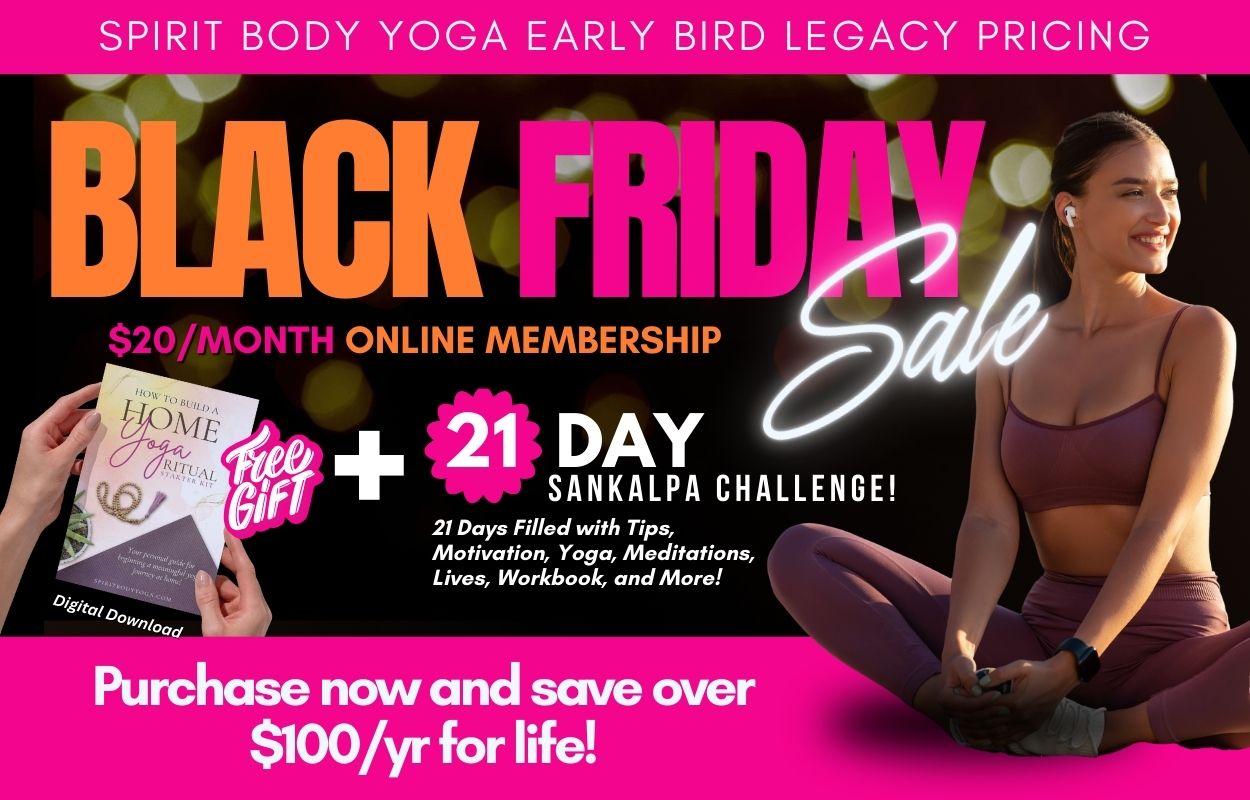 (Offer ends December 5th. Spirit Body Yoga Online Studio launches December 19th and you won't be charged until then. Enroll Now for $20/month. Cancel Anytime.)